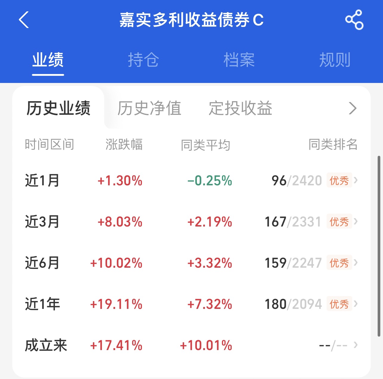 $嘉实多利收益债券C$ 净值曲线更为平滑。同时,它充分发挥“固收+”策略的灵活性,精选权益个股,主动出击捕捉股市机遇,收益弹性高。