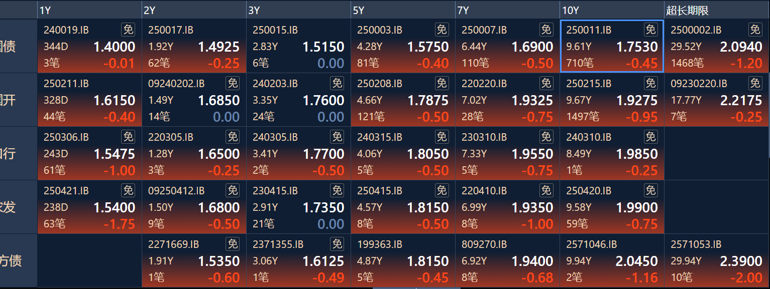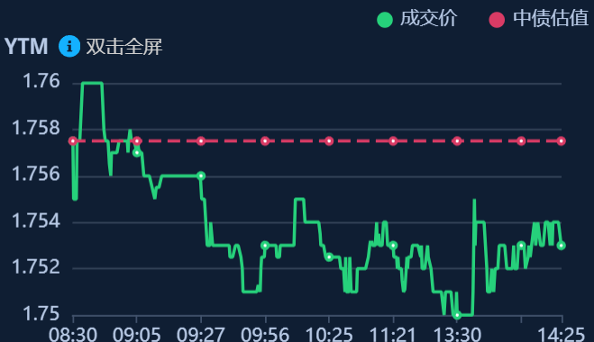 二、十年期国债收益率:1.7535 -0.004%(国债收益率越涨,债市越跌,两者反向关系)
