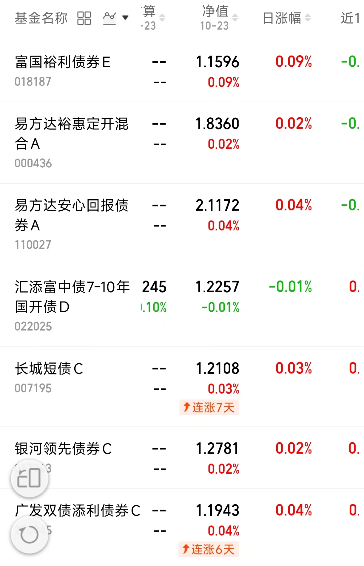 债市今天也就那样吧,还好手里的富国基金表现还不错。$富国裕利债券E$(018187)今天收了9个蛋,这个收蛋数在同类里算是很出色的了,易方达安心回报债券A(110027)收了4个蛋,易方达裕惠定开混合A(000436)收了2个蛋。$富国裕利债券E$(018187)确实不错,拿着很安心#科技热点摊开业啦#
