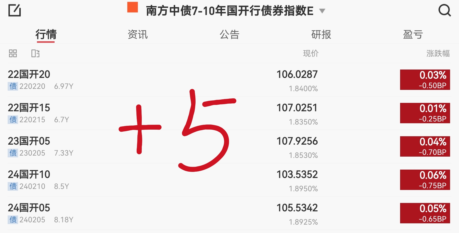 利率债持续回落,相关利率债基金的估值也是越来越低。南方中债7-10年国开行债券指数E目前收5个蛋3。