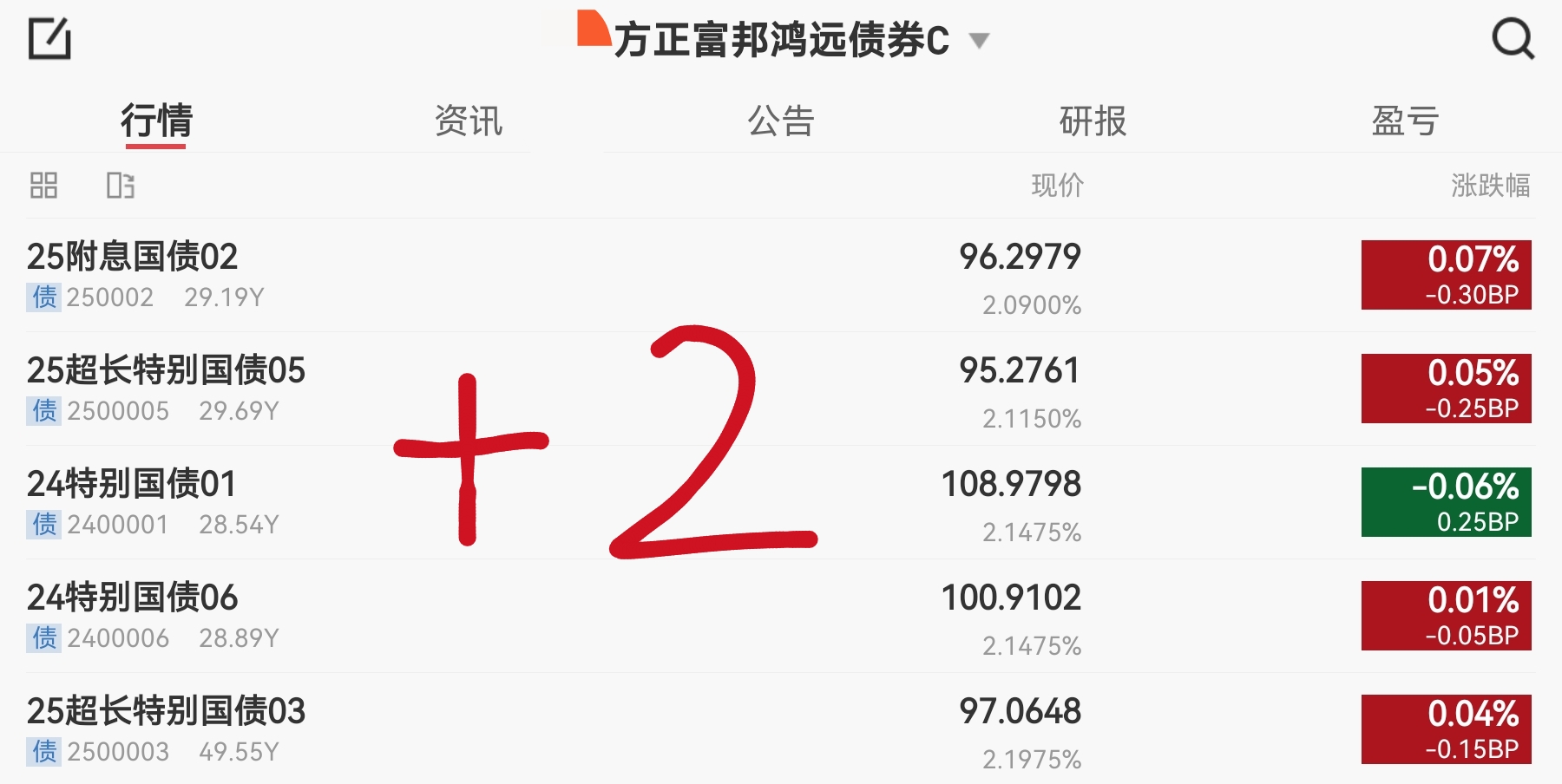 利率债:今天利率债早盘冲高回落,随着盘中权益市场和可转债的持续拉升,利率债的下行趋势有增无减。总体来看,今天利率债的走势不太好,早上的时候方正还是收43个蛋了,但是目前回落幅度特别大,只剩下2个蛋了,并且他重仓的债券中已经有一只开始绿了。所以,思来想去$方正富邦鸿远债券C(OTCFUND|015909)$今天还是先不加仓了。