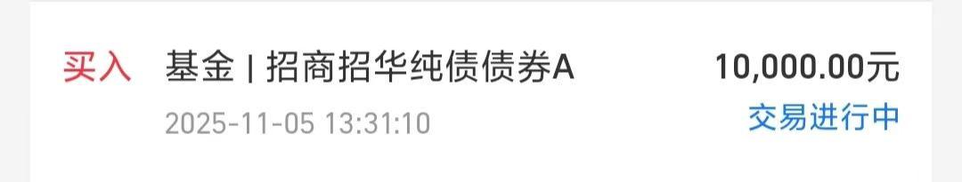 信用债:今天继续加仓$招商招华纯债A(OTCFUND|003448)$,买入10000元,布局信用债基金。