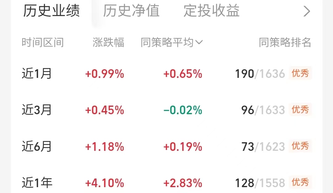 该固收+基金不仅持仓范围大,而且各类资产配置也比较均衡,他以57.55%的信用债和21.73%的利率债打底,搭配12.90%的股票和1.73%的可转债,这样的配置在牢牢把握债市上涨行情的同时,也能捕捉到股市机会,从而获得更高回报。面对市场调整,表现出了较好的防守能力,抗跌能涨,不仅回撤小,而且修复速度也比较快,本轮调整最大回撤只有0.65%,仅用7个交易日就修复了回撤,所以今天继续加仓。