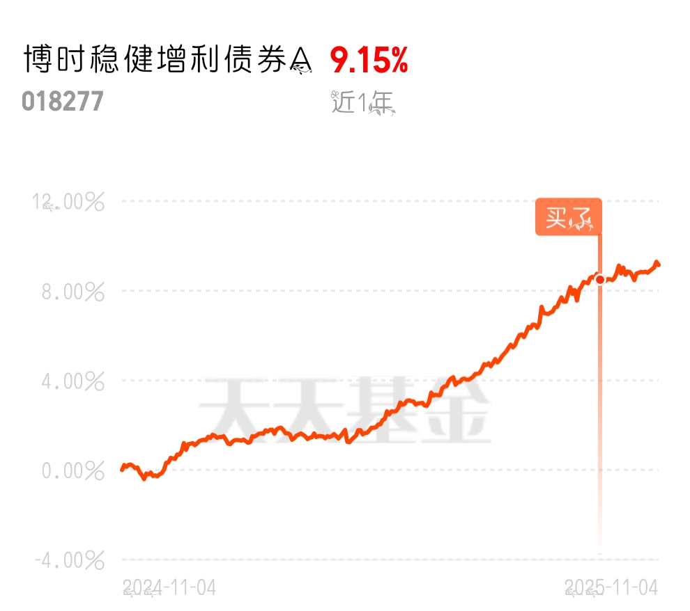 $博时稳健增利债券A$ 近一年收益率稳稳超过9%,在同类债基里排名前15%。昨天债市微调,我顺手就加了笔仓。10月制造业PMI回升至50.2%,时隔三个月重回扩张区间,其中新订单指数达50.5%,说明企业需求在逐步回暖。这对基金的债券部分是个好消息,因为PMI回升往往伴随经济预期改善,债券市场的避险情绪会有所降温,这只基金的债券持仓以中短久期为主,能有效规避利率波动风险。之前PMI回升时,很多长债基大幅回撤,但这只基当时却稳住了,足见基金经理在久期管理上的功力。再看权益仓的亮点,这只基真是踩准了近期的热点,川投能源和华润电力正好撞上11月公用事业板块的风口。现在大盘在3900点横盘晃悠,很多股票涨一天跌一天,反而这种有政策托底、业绩扎实的板块最稳。这只基用80%的债券打底,20%左右的权益仓位抓这类确定性机会,固收+的优势体现得淋漓尽致,既能靠债券拿到基础收益,又能靠权益增厚收益,近半涨超6个百分点。#亚马逊签下OpenAI千亿算力大单#