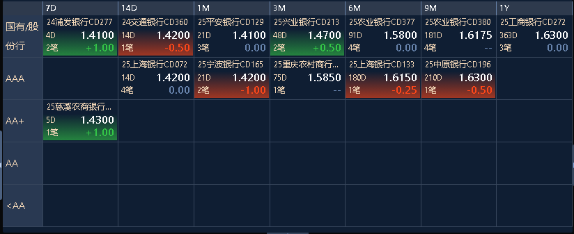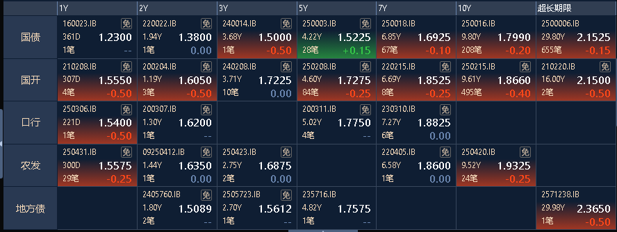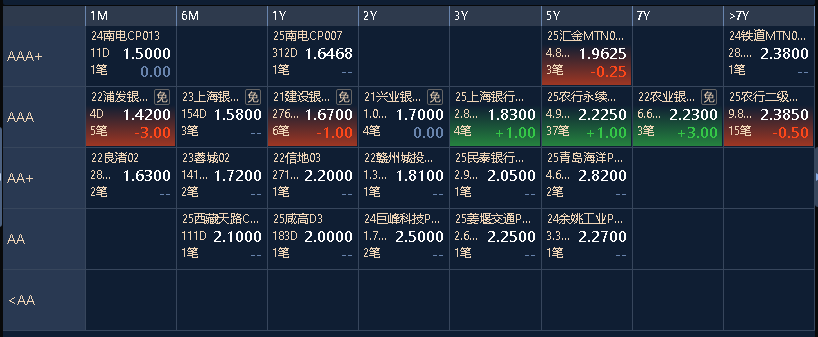 今天权益市场三大指数低开,债市情绪有所平稳,银行间主要利率债收益率小幅下行,信用债盘面涨跌互现,整体震荡走势,品种上看,普信债收益率多下行,金融机构债收益率较多上行。
