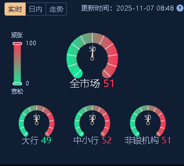 DR001报1.31%左右,DR007报1.41%左右,资金情绪均衡偏紧(CNEX资金面情绪指数在51)