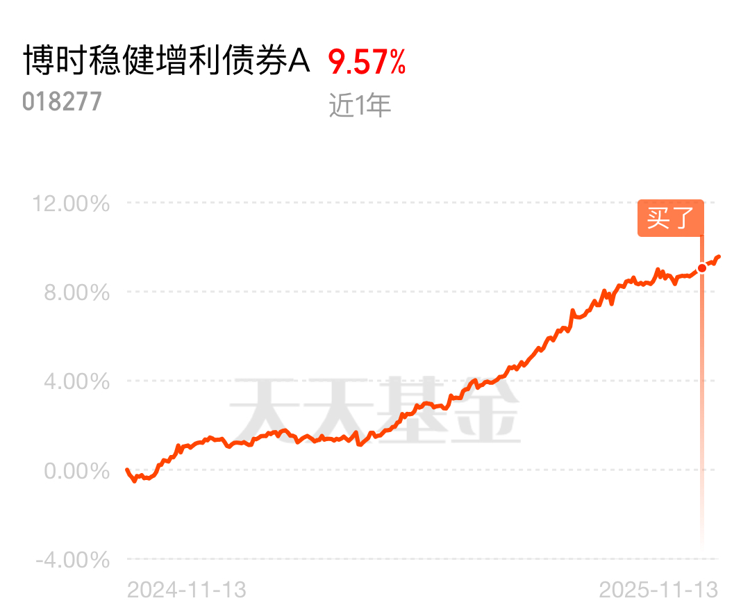 昨天债市回调,但$博时稳健增利债券A$ 却悄咪咪收了5个蛋,近一周累计攒蛋三十多,近一年年化收益率已达到了9.57%,这成绩在同类产品中十分亮眼。这只基金的策略特别务实,采用“利率债打底+信用债增强”的组合。11月资金面延续宽松,中长期流动性到期压力比10月少了1000亿元,缴税规模也减少8000亿元,双重利好让流动性特别充裕。这基刚好重点配置了短期利率债,这类资产既能享受稳定票息,又能规避长久期利率风险,最近债市回暖带动价格上涨,这部分仓位贡献了不少基础收益。而且基金还通过国债期货对冲风险,在之前债市震荡时就提前调整了持仓,在回调中能稳住阵脚。更惊喜的是它权益仓位的爆发力,它的权益部分踩点太准了,基金经理没有追高热门赛道,反而看重近期政策发力的“新基建”板块,尤其是特高压和数据中心领域的龙头股。就拿三季度加仓的某特高压设备公司来说,近期因为电网投资加码的消息,股价连续上涨,还有数据中心板块受益于算力需求爆发,相关个股表现强势。这部分权益仓位占比虽然不高,但在昨天债市回调时刚好对冲了波动,成为逆市收蛋的关键。#黄金又牛起来了!这次你上车了吗?#