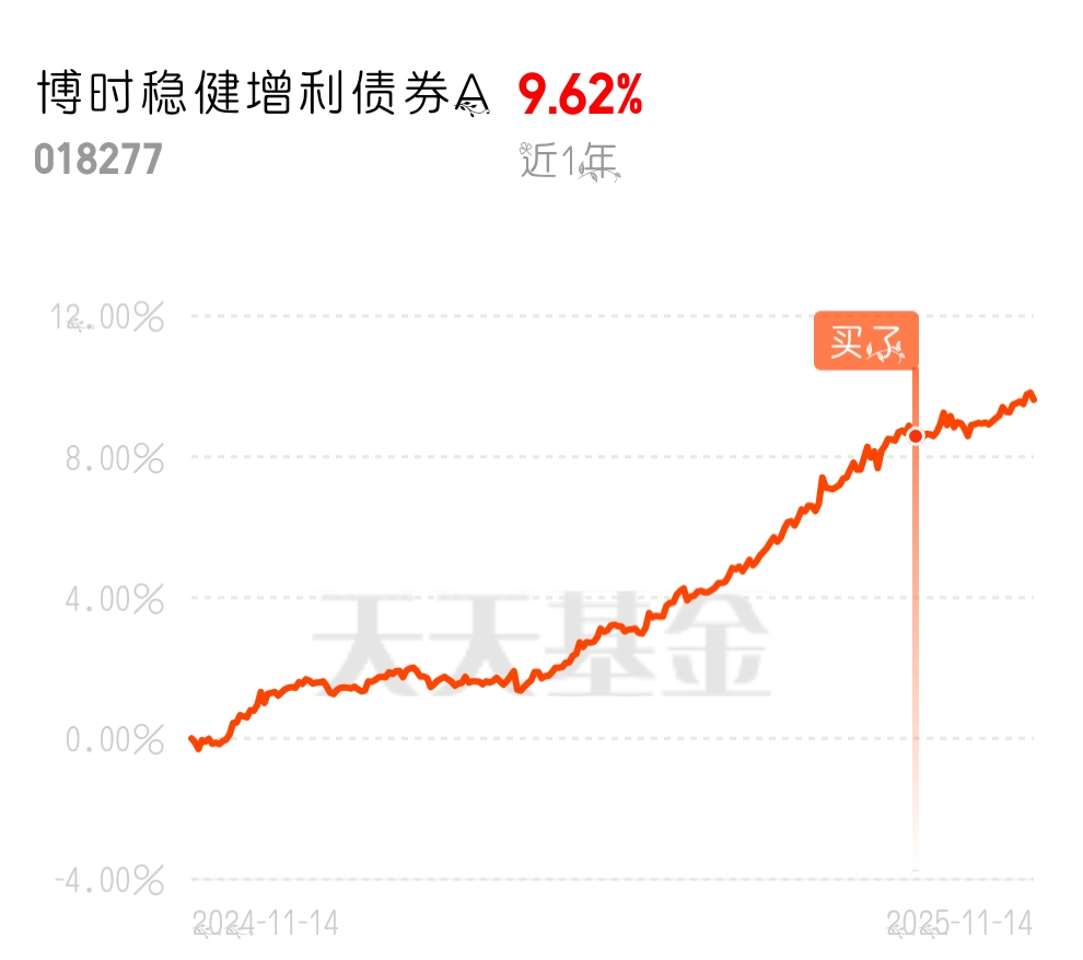 $博时稳健增利债券A$ 主打一个稳中求进,债券打底稳住基础收益,股票部分进攻博取超额收益,近三个月产蛋234个,近一年年化收益率已达到了9.62%,长期收益领先同类。这只基金八成以上都是债券资产,还集中在国债、光大银行AAA级金融债这种硬通货,全是高评级标的,票息收入稳定,安全性也极高。最近还赶上了大利好,11月资金面比10月宽松太多,中长期流动性到期压力少了1000亿,缴税规模也降了8000亿,央行又重启国债买卖注入长期资金,短端利率直接跌到政策利率以下。这基刚好重仓中短端信用债,债券估值跟着涨,净值自然稳中有升。更惊喜的是20%的权益仓精准踩中热点,基金经理太会选股了,提前布局了宏创控股、洛阳钼业这些有色金属股,最近刚好赶上有色板块回暖,季度大涨。洛阳钼业作为全球钼矿龙头,随着新能源汽车用钼需求增长,业绩环比改善明显,股价大幅上涨,这基跟着分到不少红利。还有持仓了思摩尔国际,消费电子板块近期复苏,它的海外订单增长超预期,股价悄悄涨了15%,这部分权益仓直接给基金多添了不少收益。现在股市高位震荡,正是布局固收+的好时机。#三星内存涨价60%!全面涨价潮来袭?#