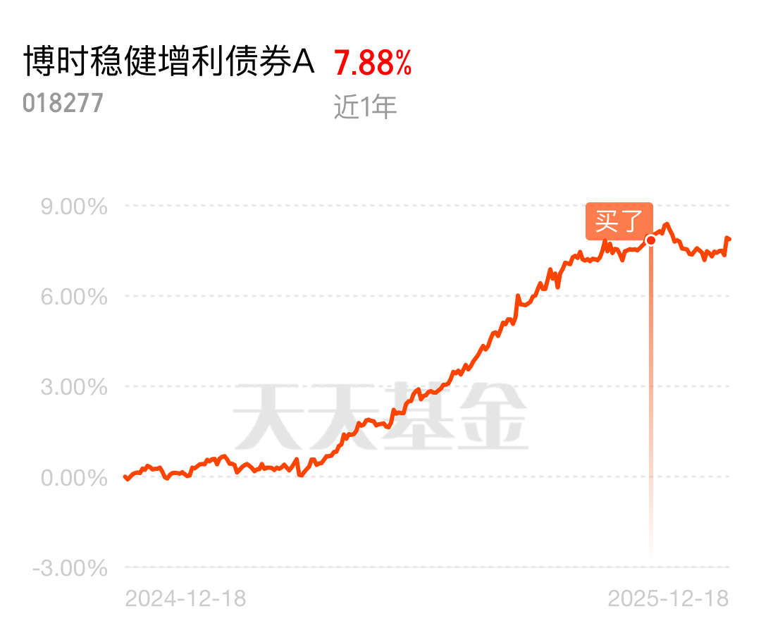 市场波动时,就得把风险拴牢,$博时稳健增利债券A$ 的策略我挺认可,债券资产作为基石,同时用一小部分灵活把握股市机会。回撤小,一年下来拿下将近8%的收益,挺满意的。12月16日财政部专门针对25附息国债15、17开展做市支持,成交总量超7.7亿元,中标收益率低至1.4%。这只基金的债券仓位里,高等级利率债占比近60%,财政部主动下场做市,相当于给这些国债的流动性和价格稳定性上了“双保险”,票息收益有保障,还能赚得资本利得。再加上中央经济工作会议明确“灵活高效降准降息”,10年期国债收益率近期下触1.8%的低位,债券部分的收益底座打得特别牢。近期国内火箭发射进入密集期,SpaceX星舰技术持续突破,商业航天产业链迎来爆发窗口。这只基金的权益仓位准踩中了商业航天这个大热点,持仓的航天工程、长城电工等标的,要么是长征火箭发射服务核心供应商,要么兼具核电+商业航天双重逻辑,12月以来股价涨幅都超12%。现在A股在3800点震荡,正是布局这类高景气赛道的好时机,再偷偷说个薅羊毛小技巧,搜索“博时固收”就有20元券,相当于买入就赚一笔补贴。#长征十二甲要来了!商业航天如何掘金?#