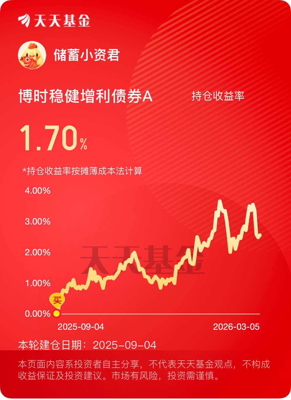 指数在4100点上下摇摆,债市依旧平稳,低波动固收+拿着很踏实。$博时稳健增利债券A$ $昨天又小赚了一笔,一年下来收益8.5%+,底仓债券提供安全感,增强部分时不时给点甜头,体验挺好。3月资金面持续宽松,央行持续呵护市场,DR001等短期利率维持低位,银行“资产荒”下大举增配债券,债券市场整体偏强运行。这基的债券部分充分受益,利率债提供稳定底仓,信用债精选优质标的,票息收入稳健,在宽松流动性环境下,债券价格稳步走强,为基金提供了扎实的安全垫,震荡时期也能稳稳托底。权益部分更是精准踩中风口,最新持仓布局的万华化学、嘉友国际,叠加资源板块的藏格矿业、盐湖股份,全是当下最具潜力的方向。万华化学作为化工龙头,受益于下游需求复苏,业绩稳定增长;嘉友国际受益于外贸政策利好,远期售汇风险准备金率下调,降低外贸企业成本,物流行业景气度提升。而资源股更是迎来供给收缩+需求爆发的双重利好,全球战略资源稀缺性凸显,锂、铜、钾盐等价格持续走高,这些个股长期成长空间广阔,是能持续贡献收益的优质资产。#高盛:全球股市全面熊市概率低#