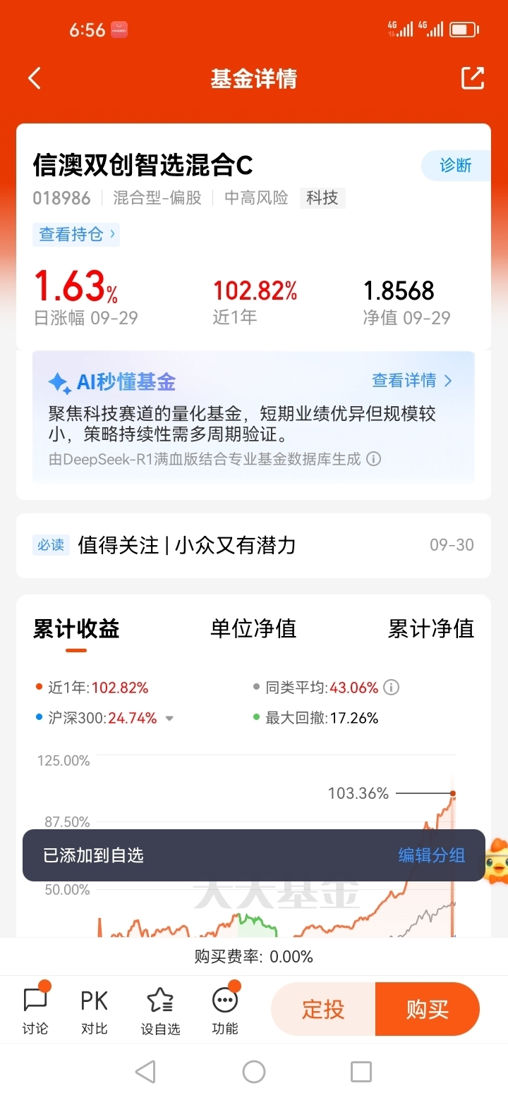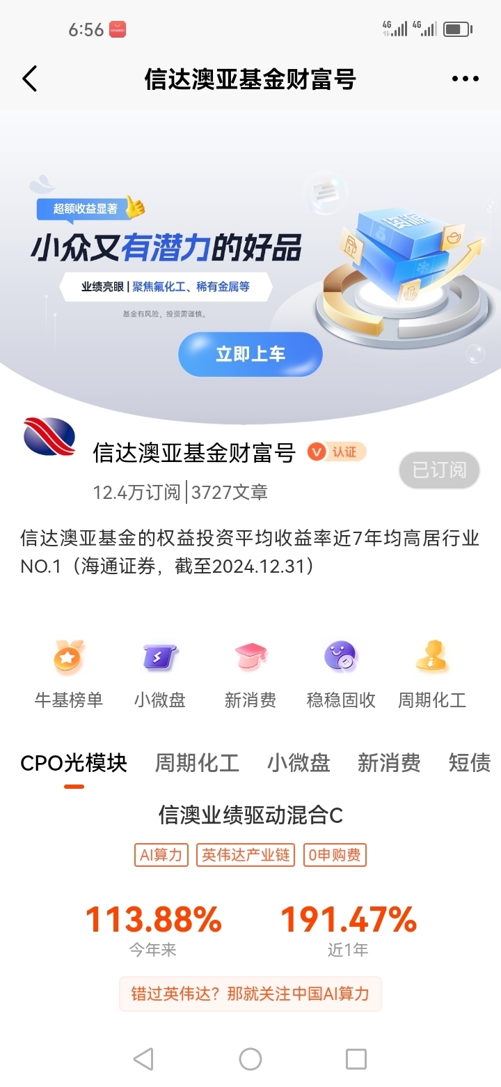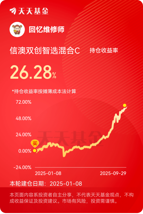 综上所述,我提前布局了信澳双创智选混合C(018986),因为冯玺祥基金经理对于人工智能赛道相当熟悉,同时他的投资经验也是相当丰富的。@信达澳亚基金