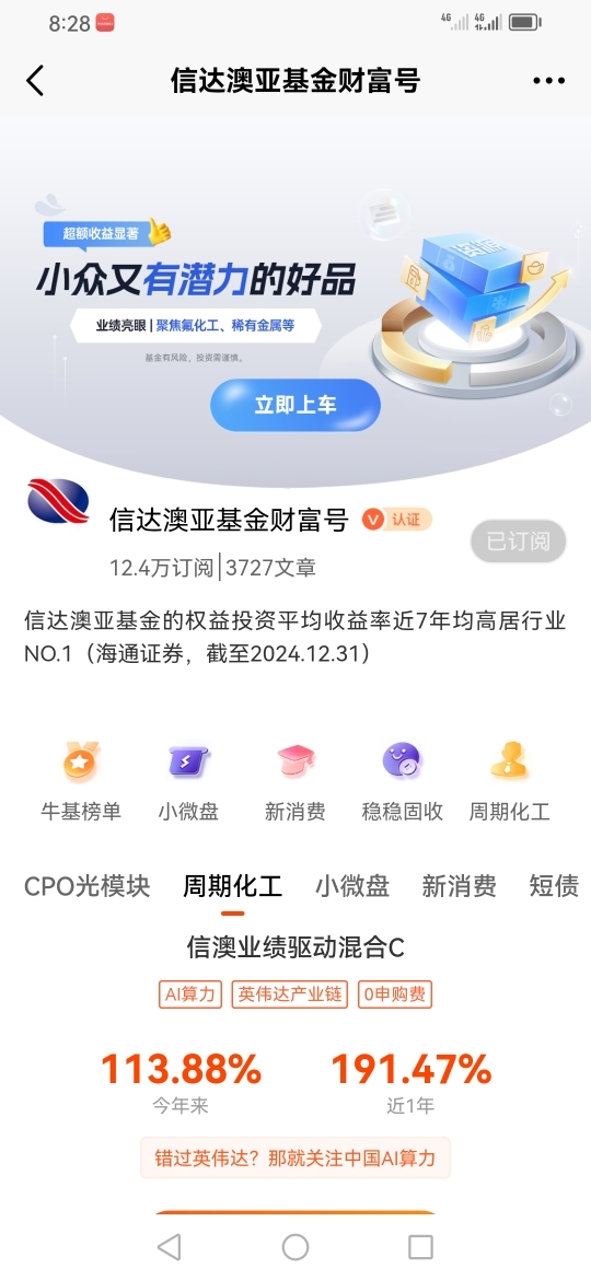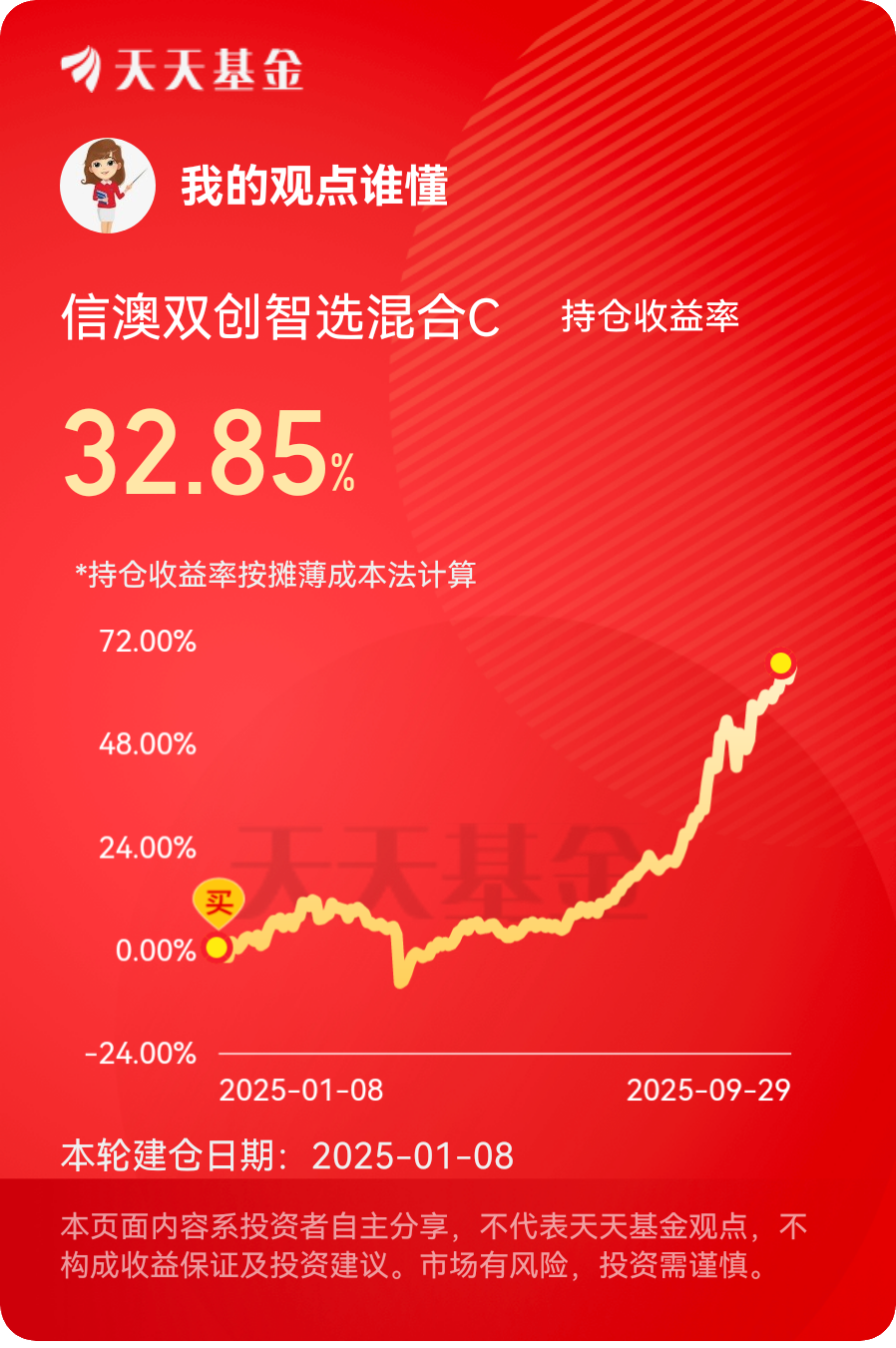 因此我选择了信澳双创智选混合C(018986),因为信达澳亚基金在投资领域相当专业,我相信它会带给我稳稳的幸福。@信达澳亚基金