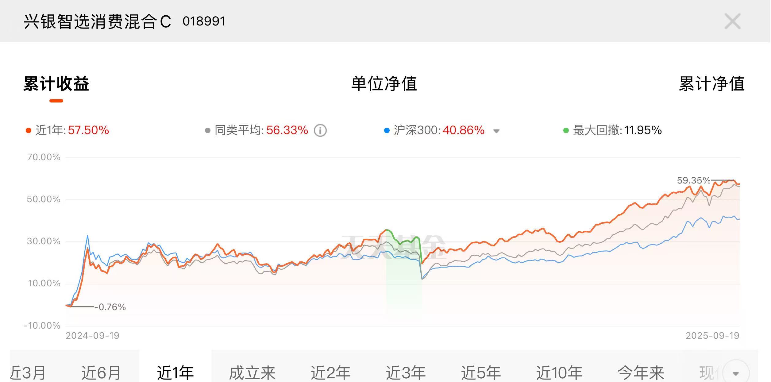 然而,并不是所有消费方向的基金都表现的一蹶不振,也有一些基金因为基金经理的精准布局与灵活配置,给投资者带来了非常不错的收益和惊喜。比如兴银智选消费混合(A:018990,C:018991)这只基金。作为一只消费主题产品,其坚持在消费细分领域中筛选高性价比资产,兼顾成长与稳健风格。