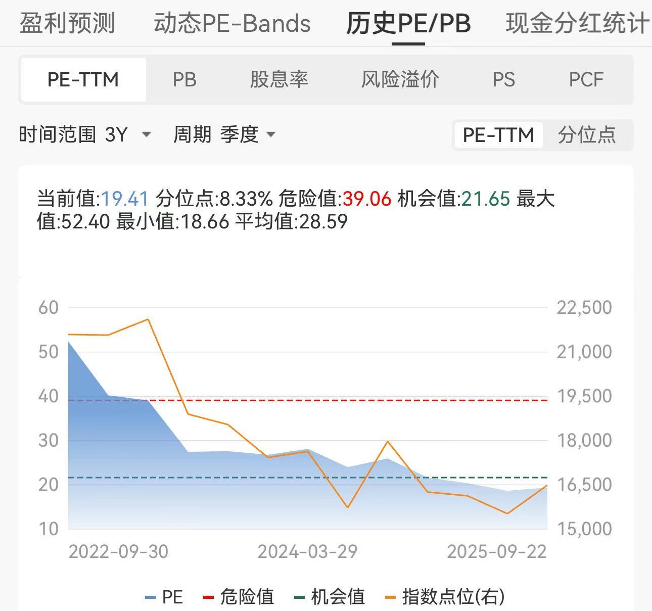 但正因如此,消费板块当前整体估值压缩明显、业绩尚未释放,反而形成了性价比更高的介入区间,值得逆周期加仓。从估值上看,消费板块估值已处于近3年低位。截至9月22日,中证主要消费指数市盈率19.41倍,略高于该指数近3年最低市盈率18.6倍,较近3年平均市盈率28.59倍低三成左右;同期上证指数、证券公司指数及万得科技大类指数的市盈率均超过近3年的平均值。