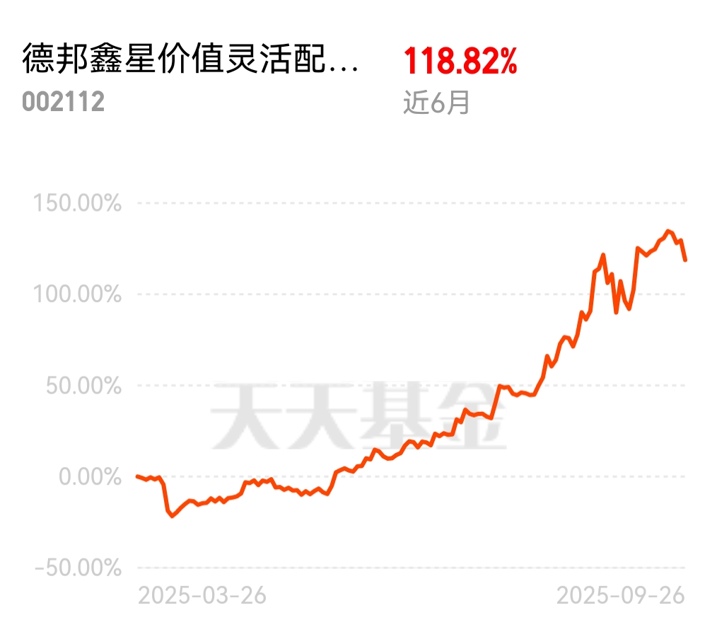 不少人纠结持币还是持股,其实优质基金不用慌。德邦鑫星价值灵活配置混合C近6个月118.82%的业绩摆在这,跟着吃肉准没错,节前抓紧上车别犹豫!$德邦鑫星价值灵活配置混合C$