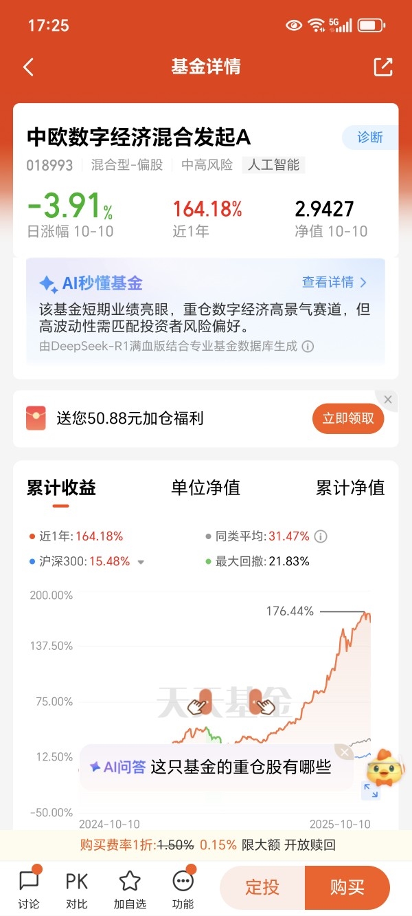 正好领了基金详情页的红包进场了