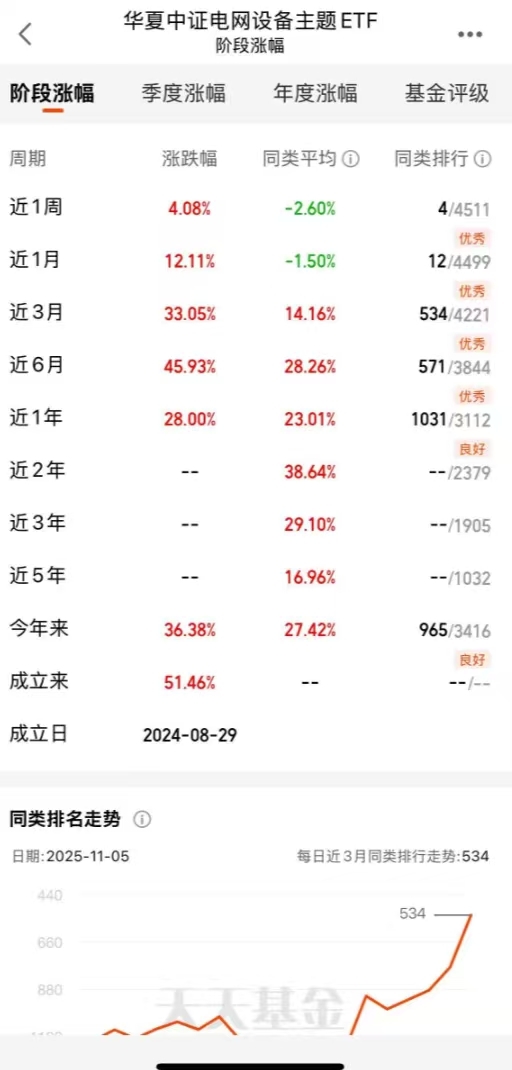 当前电网有坚实的逻辑支撑,这基场内近6个月收益45%+,近一个月收益同类前12名,收益很稳健的,刚好场外现在有了新基金$华夏中证电网设备主题ETF发起式联接C$,新发募集期我先上车