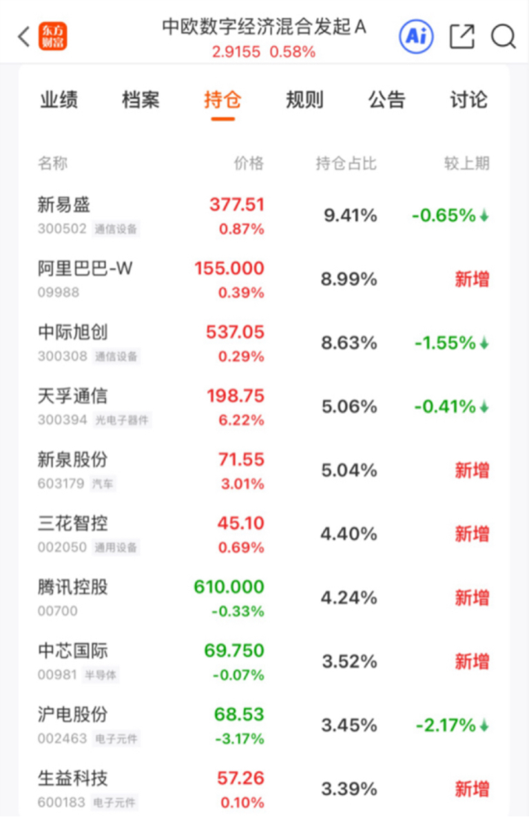 $中欧数字经济混合发起A(OTCFUND|018993)$ 垃圾…天孚白涨6%了…