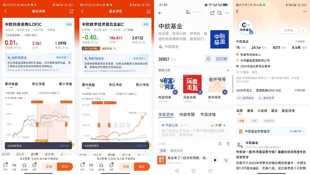 对普通投资者来说,这种搭配也简化了投资纪律:不用纠结单一品种的涨跌,也不用频繁调仓,只需根据自身风险偏好调整两只基金的仓位比例——风险偏好高些,可适当提升中欧数字经济混合发起C的占比;偏爱稳健,就加重中欧纯债债券(LOF)C的配置,像把控运动节奏一样,守住投资的“攻防底线”,才能在长期投资中走得更稳、更远。