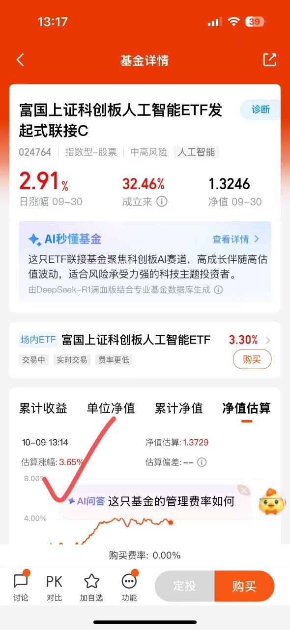 $富国上证科创板人工智能ETF发起式联接C$ 今天估值3个点,人工智能雄起继续上