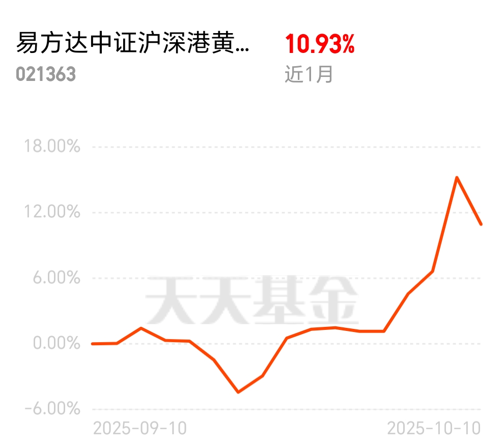 最近黄金回调了一点点,但根本不影响大趋势,行情还是向上的。易方达中证沪深港黄金产