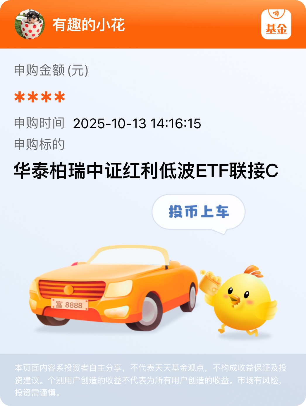 波动市中,真金白银的分红才是硬道理。$华泰柏瑞中证红利低波ETF联接C$ 今天逆势上涨,这底气太足了。