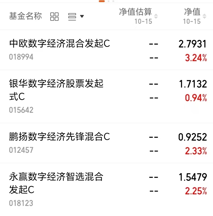 $中欧数字经济混合发起C(OTCFUND|018994)$上涨3.24%;