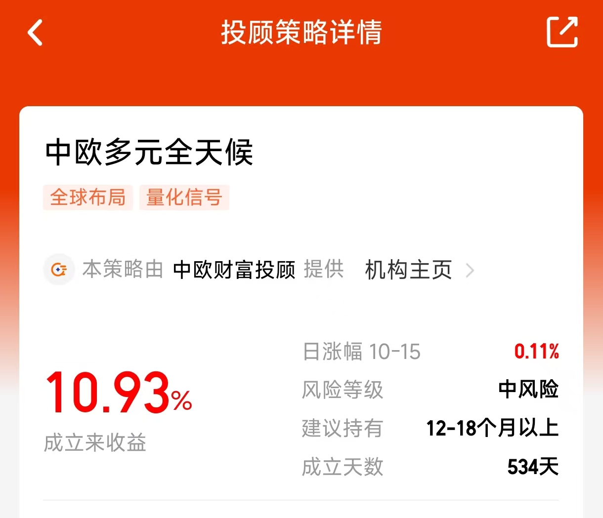 最近市场波动加剧,我的账户净值像坐过山车,但持仓里的中欧多元全天候却显得格外“淡定”。回顾近一年数据,它累计涨幅达到9.22%,最大回撤仅2.02%,波动率控制在2.63%左右。我仔细看了它的配置思路,发现它并不依赖单一市场,而是以固收资产为底仓,搭配全球股票、债券和商品,利用不同资产间的低相关性平滑波动。比如美股上涨时能对冲A股调整,黄金和债券又能在风险事件中提供缓冲。这种“东边不亮西边亮”的布局,让持有体验踏实许多,尤其适合当下反复震荡的环境。#存储芯片掀涨价潮!行业或迎超级周期#