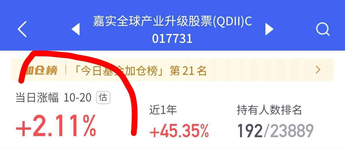 今天太给力了要吃肉了,$嘉实全球产业升级股票(QDII)C$ 表现优秀,核心覆盖英伟达、美光科技等顶尖科技企业。2024年借美股半导体获利,今年又纳入中芯国际等港股标的,把握港股科技行情。截至目前估值2.11%,基金近一年涨幅超45%,显著跑赢同类。未来AI资本开支带动芯片需求,继续看涨了。