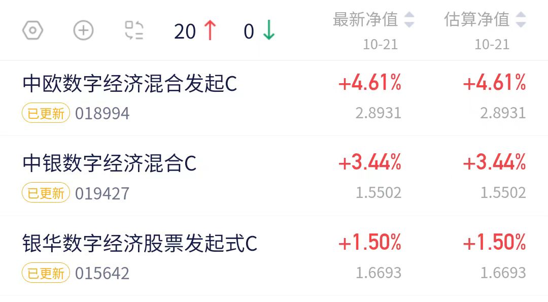 今天科技赛道继续反弹上涨,不愧是科技牛年啊。$中欧数字经济混合发起C(OTCFUND|018994)$布局AI全产业链,所以业绩涨幅也更加可观。今天上涨4.61%,近一年上涨152.01%,