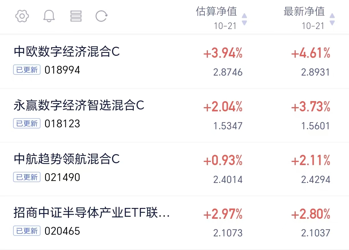 $中欧数字经济混合发起C(OTCFUND|018994)$涨4.61%