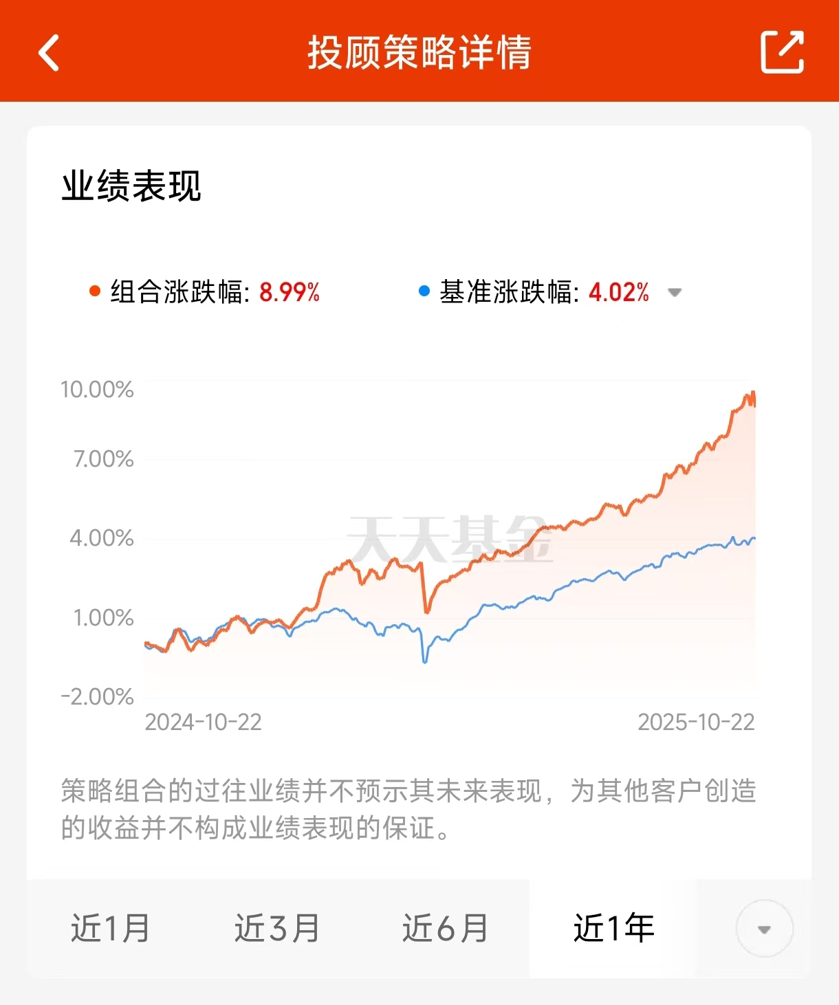 最近市场波动,但整体还挺稳当,这主要归功于我配置了一部分中欧多元全天候投顾组合。哪怕某个单一市场起伏比较大,整个组合的波动也被摊平了很多。我关注了一下它近一年的数据,涨幅有8.99%。对我来说,目前的市场环境下拿着心里更踏实,也更能拿得住。#高盛看多A股:慢牛正形成 还有约30%上涨空间#