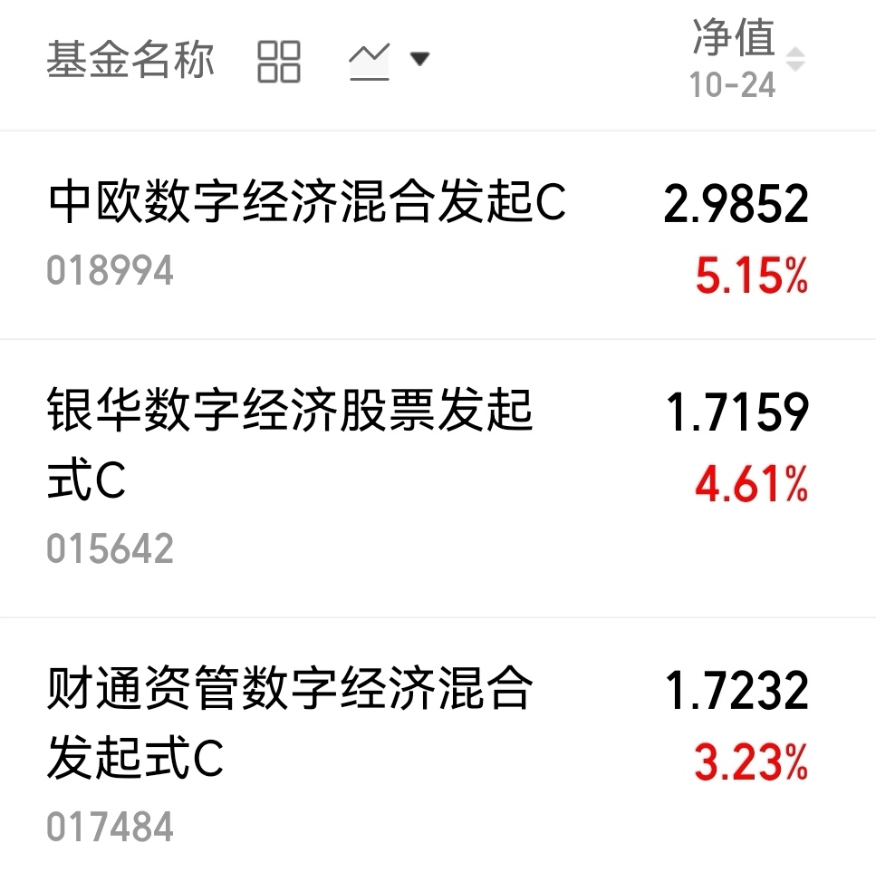 $中欧数字经济混合发起C$ 今天上涨5.15%,涨幅真的太喜人了,反弹居前,所以说回调的时候一定得补补仓,只要成本低了回血真的很快。