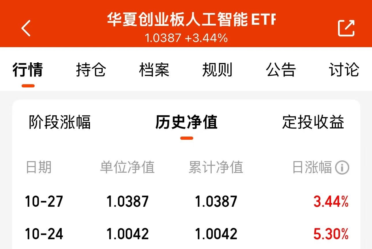 市场赚钱效应继续集中在科技领域,昨天收益3.44%,近一周收益12.39%,期待$华夏创业板人工智能ETF发起式联接C$继续吃肉