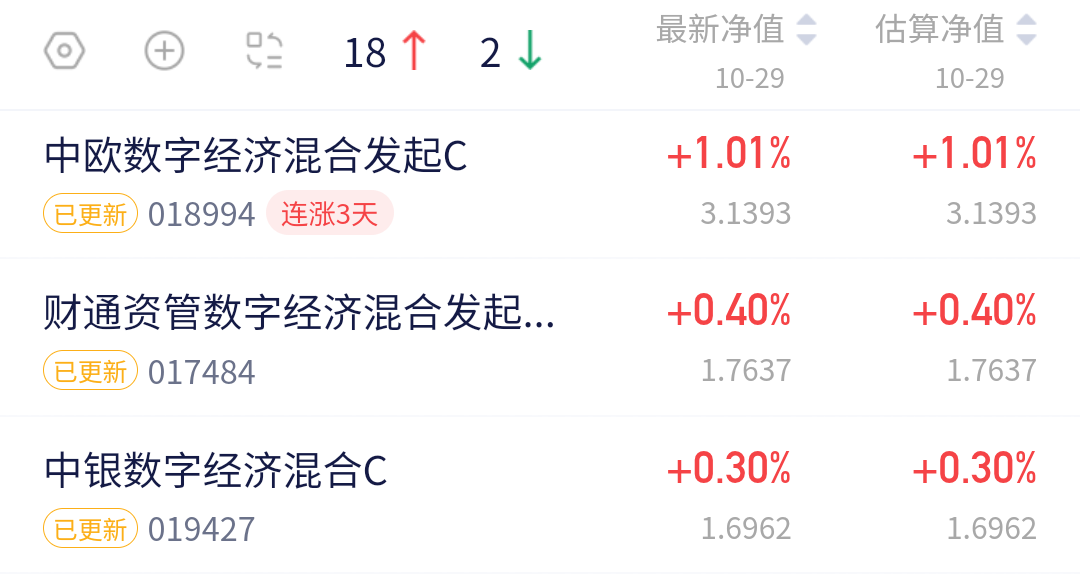 $财通资管数字经济混合发起式C(OTCFUND|017484)$今天上涨0.4%