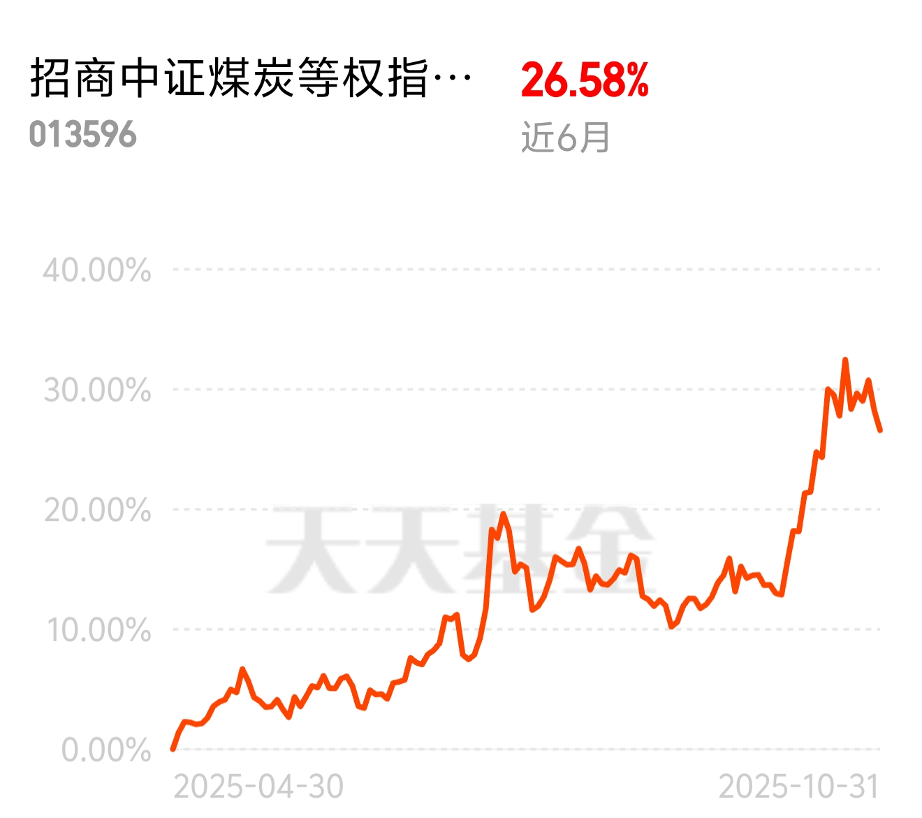 煤炭板块的技术面走好,低点抬高,走势稳,四季度技术面支撑涨。$招商中证煤炭等权指数(LOF)C$ 近6个月26.58%,技术面支撑涨势稳。