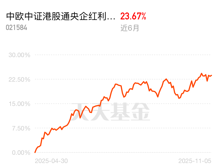 现在越来越多人选择通过港股通配置资产,低估值的央企标的成了热门选择,行情慢慢向好。中欧中证港股通央企红利指数(QDII)C近6个月涨了23.67%,作为QDII基金,帮你轻松布局港股优质央企。$中欧中证港股通央企红利指数发起(QDII)C$