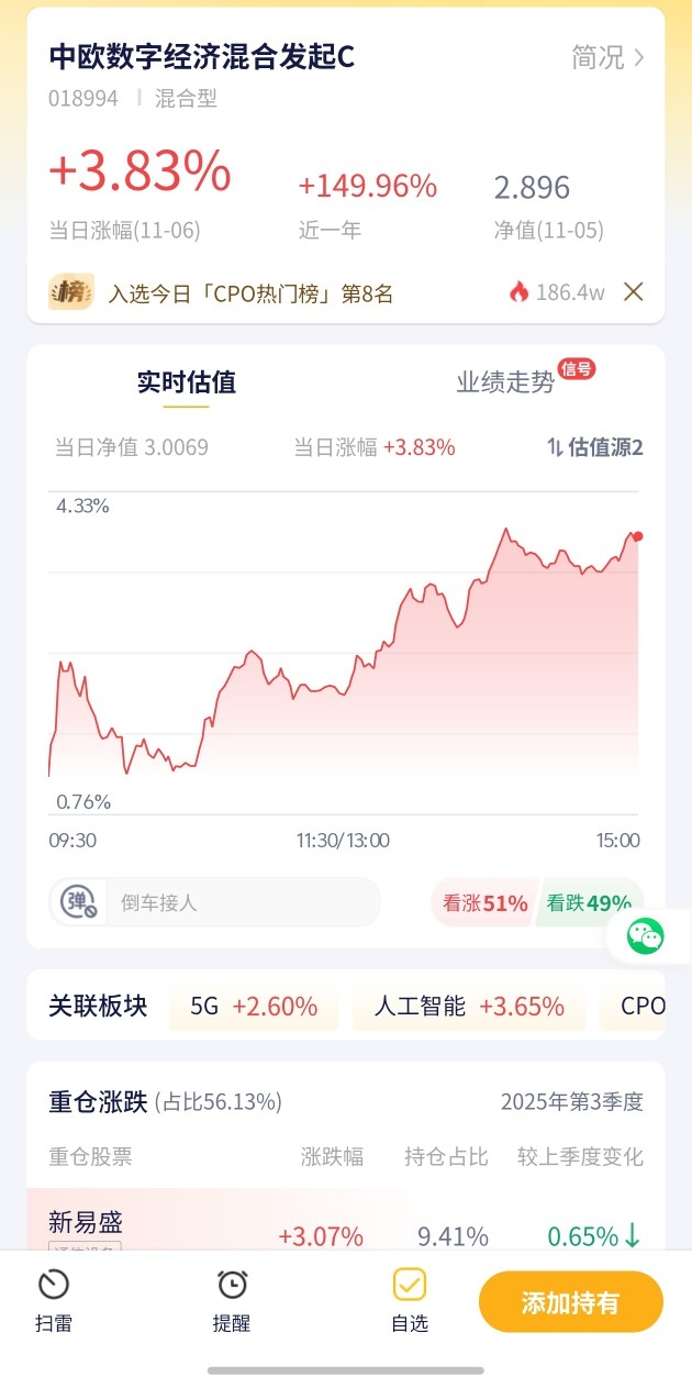 3. 【中欧数字经济混合发起C估值播报+11-06行情】