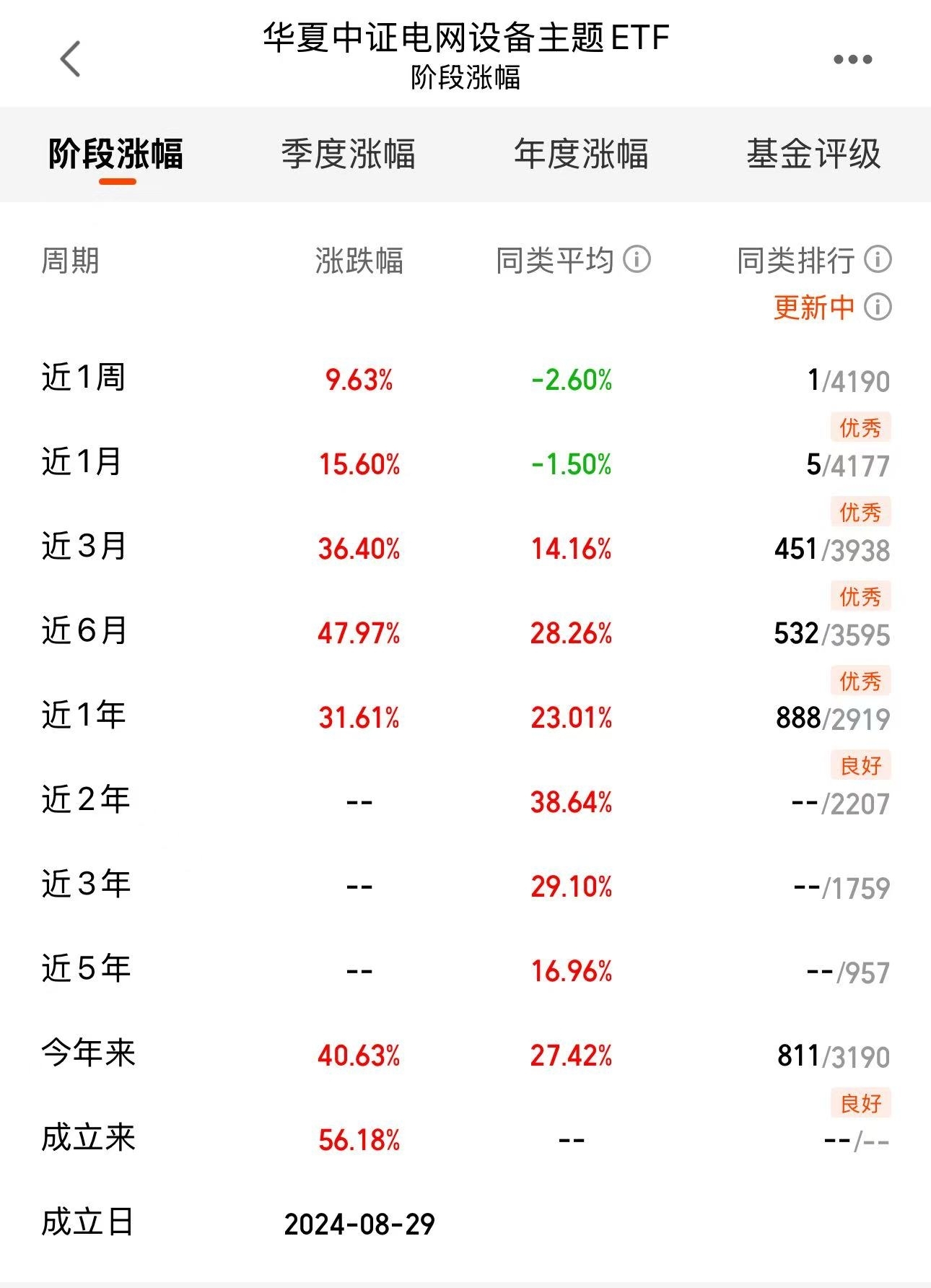 今天市场反弹优秀的就是电力,场内收益2.42%亮眼,近一周上扬9.63%,排名第一,短期业绩冲劲足,$华夏中证电网设备主题ETF发起式联接C$长期趋势好,必入基