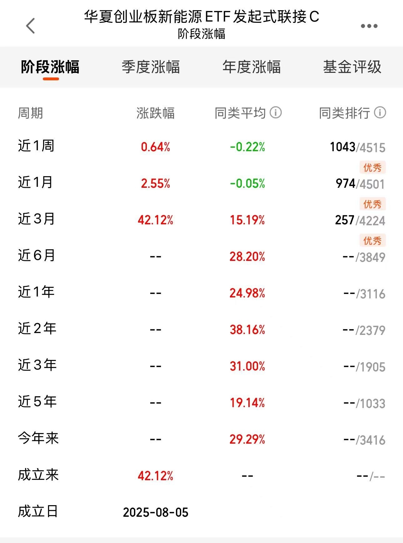 昨天收益1.38%,今天继续上扬,$华夏创业板新能源ETF发起式联接C$全市场首