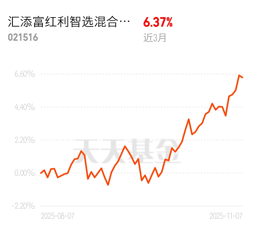 从历史来看,年末风格切换大概率会发生,前三季度表现好的行业往往难持续,中游标的容易后来居上。汇添富红利智选混合C近3个月收益6.37%,把握市场节奏,在红利赛道里走出稳健行情,适合稳健型朋友。 $汇添富红利智选混合发起式C$