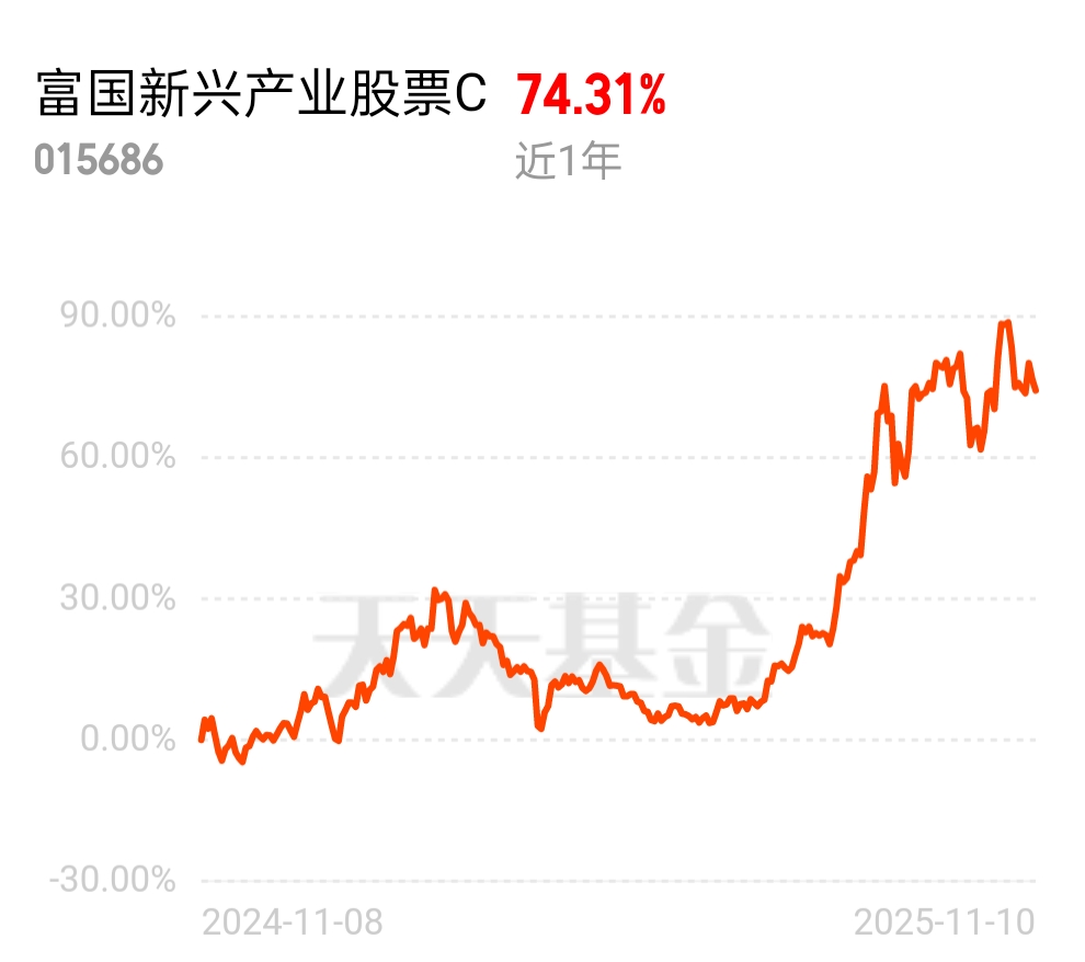 这边同时间持续拥有中欧数字经济C和富国新兴产业C,后者精选光模块、AI算力和芯片,近一年涨76%,扛打大多数同类,反弹快、拿得住。$富国新兴产业股票C$