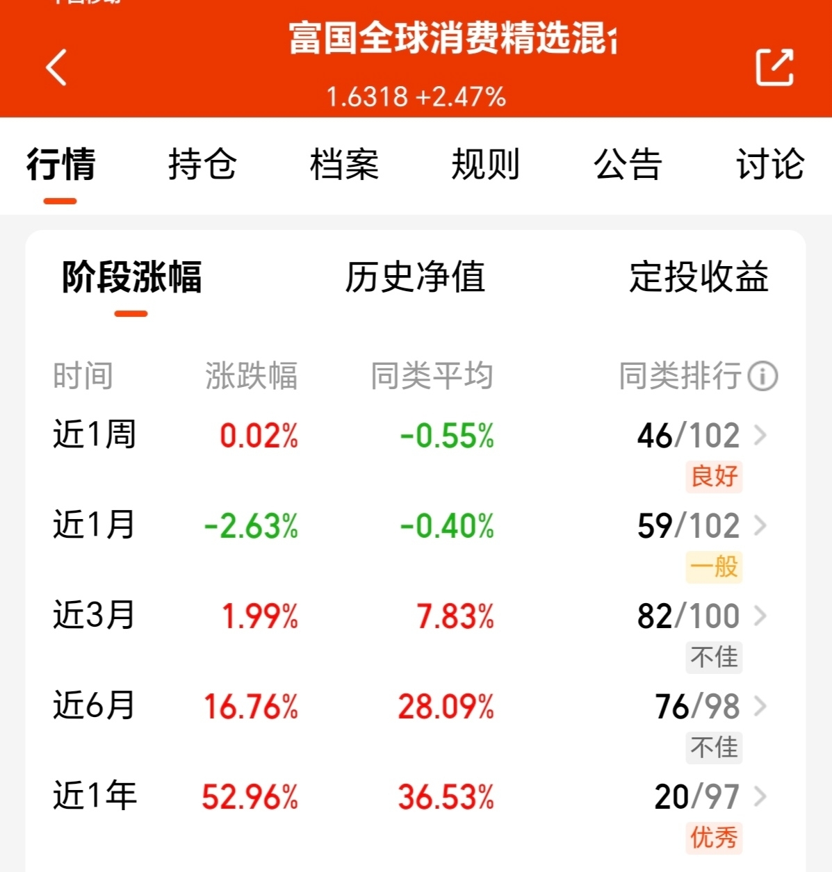 消费板块太争气了!富国全球消费C昨晚大涨2.47%,近六月涨16.76%,今天估