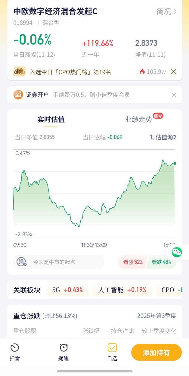 5. 【中欧数字经济混合发起C估值播报+11.12行情】