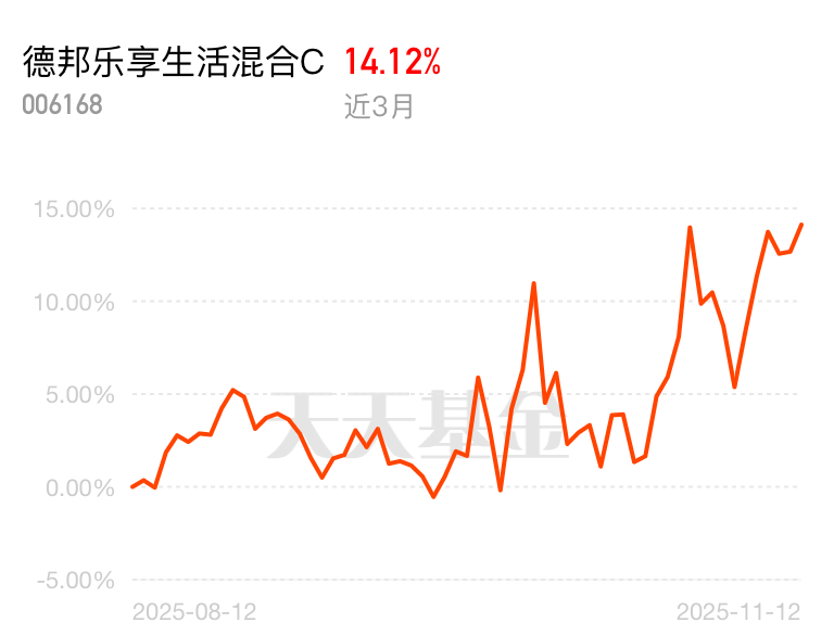 年底基金冲排名,优质混合基金发力明显,德邦乐享生活混合C表现不俗,近3个月收益14.12%,收益稳波动小,入手后等着年底分红就行。 $德邦乐享生活混合C$