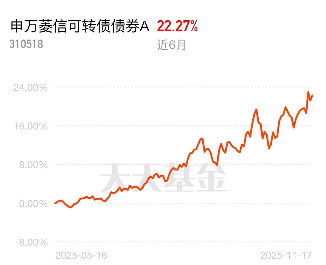 可转债攻守兼备 yyds!申万菱信可转债债券 A 近一周 2.36%、近一月 9.83%,近六月 22.27%,近 1-3 月排名前 10,我额外加了仓,顺 A 股行情爆发,后期值得冲!$申万菱信可转债债券A$