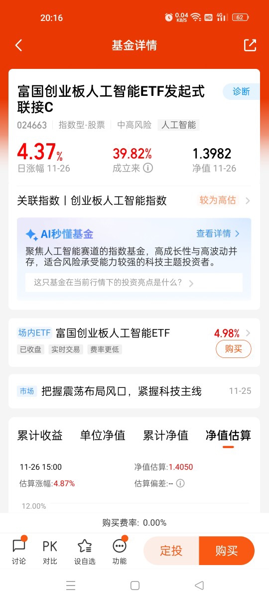 人工智能还是很猛的$富国创业板人工智能ETF发起式联接C$今天又收了4.37%,
