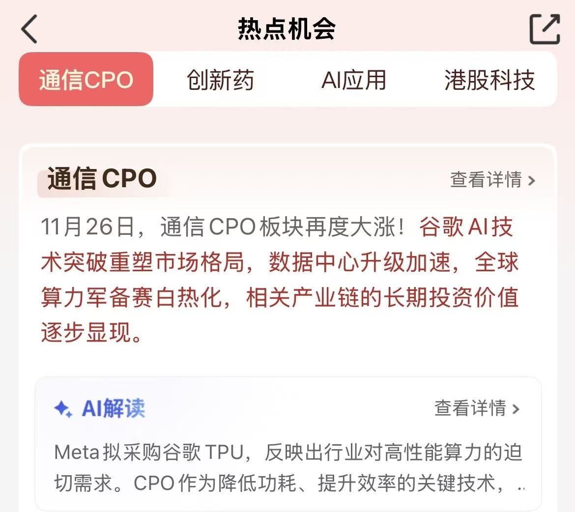 巨头都在拼命加码AI算力,手上中欧这只早就提前布局了CPO相关核心公司,逻辑这么