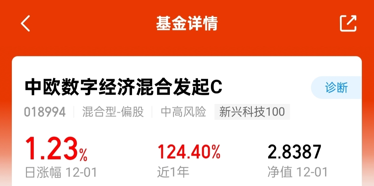中欧数字经济混合发起C :今天涨了1.23%!近期业绩不错,希望继续保持!