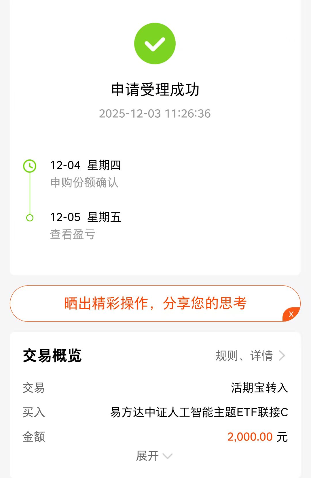 这两天股市行情回调,刚好低吸机会又来了,最近AI爆发,硬件上新,利好行情上涨,逢低加仓更有性价比呢,人工智能发展空间大,适合长期跟随布局,我加仓这只。